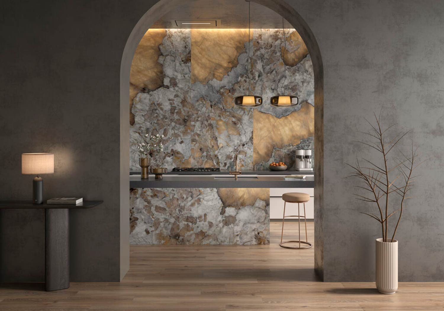 Gresie porțelanată XXL Geoda Gold mat